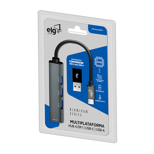 - Expansão moderna e eficiente de conexões: O HUB USB 4 em 1 HUB41A-V2 ELG é a escolha ideal para ampliar a conectividade de seus dispositivos, transformando uma única porta USB-C em quatro saídas USB-A. Compacto e portátil, conta com design moderno e corpo em alumínio, garantindo resistência, durabilidade e estilo em um único acessório. Para maior versatilidade, acompanha adaptador USB-C para USB-A, permitindo também o uso em dispositivos que utilizam este tipo de entrada.