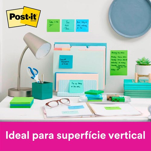 - Adesão superior e reutilizável: Desenvolvidas com a tecnologia Super Sticky, as notas Post-it apresentam duas vezes mais adesão que os modelos convencionais, garantindo fixação firme em portas, janelas, paredes, monitores e outras superfícies verticais. Mesmo assim, podem ser reposicionadas várias vezes sem deixar resíduos, preservando a limpeza e a integridade das áreas de uso.