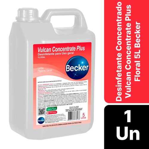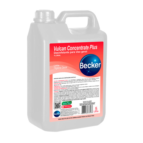 - Desinfecção técnica com ação detergente e alto rendimento: O Desinfetante Concentrado Vulcan Concentrat Plus Floral 5L Becker é uma solução profissional desenvolvida para limpeza e desinfecção de ambientes corporativos, industriais e institucionais. Sua formulação combina ação antimicrobiana comprovada contra Staphylococcus aureus e Salmonella choleraesuis com eficiência detergente, garantindo remoção de sujidades, higienização completa e perfume agradável de floral. Possui baixo poder espumante, o que reduz o consumo de água e o tempo de enxágue, proporcionando maior produtividade e economia operacional.