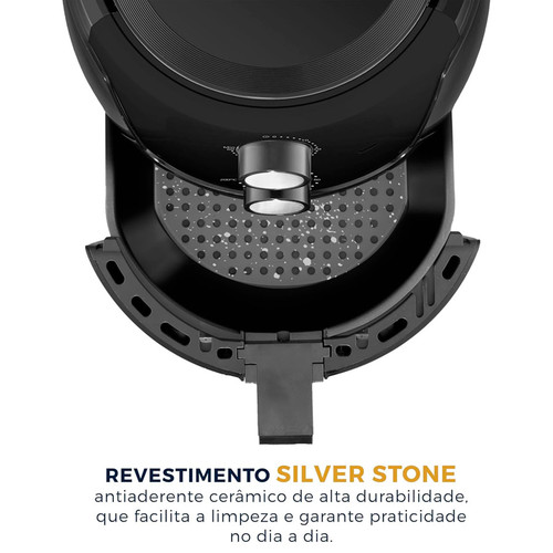 - Durabilidade e facilidade na limpeza: A cuba conta com revestimento interno Silver Stone, um antiaderente cerâmico de alta resistência que evita que os alimentos grudem e facilita a limpeza após o uso, garantindo mais praticidade no dia a dia.