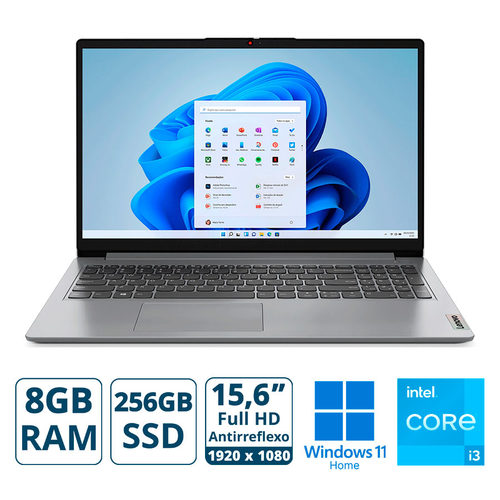 - Itens inclusos na embalagem: 1 Notebook Lenovo Ideapad 1 15IRU7, 1 Fonte de alimentação do notebook 65W, 1 Manual em português do Brasil.
