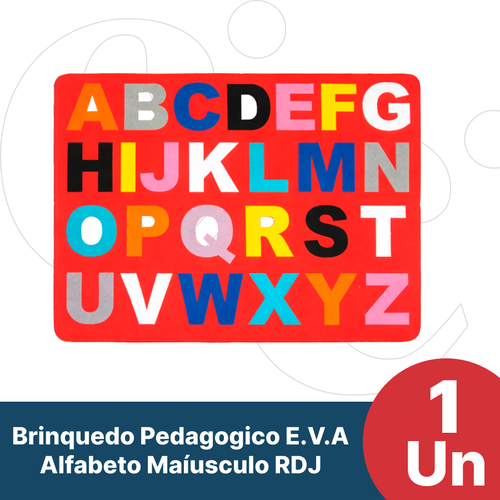 - Brinquedo pedagógico em E.V.A. para alfabetização e reconhecimento do alfabeto: O Brinquedo Pedagógico E.V.A. Alfabeto Maiúsculo RDJ foi desenvolvido para apoiar o processo de alfabetização de forma prática, lúdica e didática. Produzido em E.V.A. com espessura de 3 mm, oferece manuseio seguro e confortável, auxiliando no reconhecimento das letras e no desenvolvimento inicial da escrita, respeitando o sentido e a direção corretos da grafia.