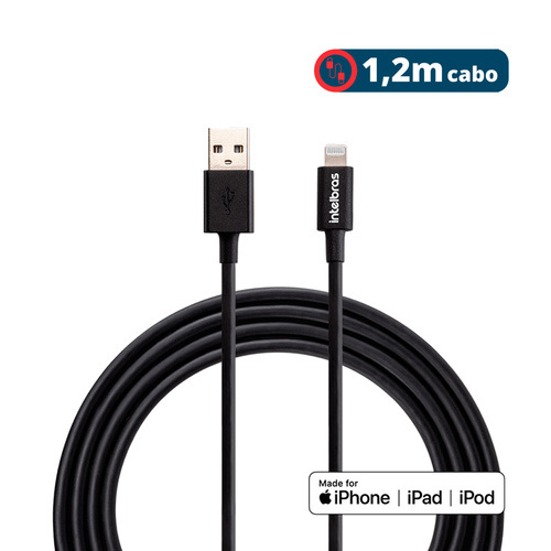 - Cabo USB para Lightning homologado Apple: O Cabo USB para Lightning Intelbras EUAL12PP foi projetado para realizar carregamento e transferência de dados em dispositivos Apple com segurança e eficiência. Possui conector Lightning de 8 pinos com homologação Apple, garantindo compatibilidade total e funcionamento confiável com iPhones, iPads e iPods, mesmo após atualizações do sistema. Suporta corrente de até 2,4 A, proporcionando recarga rápida quando utilizado com fontes compatíveis.