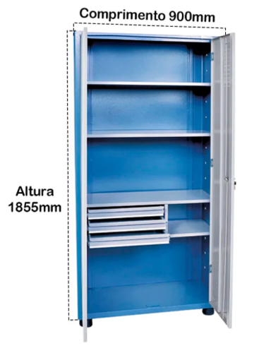 Possui portas de aço com visores temperados de 3mm. Ideal para uso em oficinas, centros automotivos, entre outros.