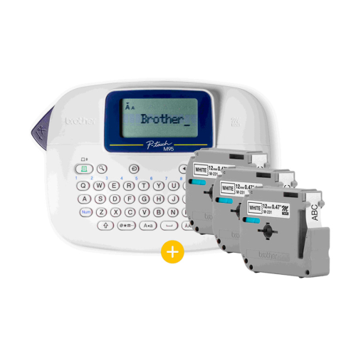 Personalize a identificação de seus materiais escolares, cozinha, quartos e muito mais com mais de 1000 combinações diferentes. O PT-M95WTBP é um rotulador eletrônico portátil elegante e moderno que utiliza fitas "M" não laminadas de 9 e 12 mm de largura. Ele imprime em 9 estilos de texto (incluindo impressão vertical), possui impressão em até 2 linhas, função de enquadramento de texto e sublinhado, todos acessíveis a partir do seu teclado QWERTY fácil de usar. Você também tem à sua escolha 210 símbolos para realmente mostrar sua criatividade em suas etiquetas!