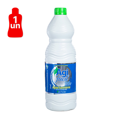 - Água Sanitária 1L à base de hipoclorito de sódio Agifácil: A Água Sanitária Agifácil é um produto à base de hipoclorito de sódio, indicado para limpeza, alvejamento de tecidos brancos e desinfecção de superfícies e hortifrutícolas. Possui teor de cloro ativo entre 2,0% e 2,5% p/p, garantindo ação eficaz na eliminação de microrganismos.