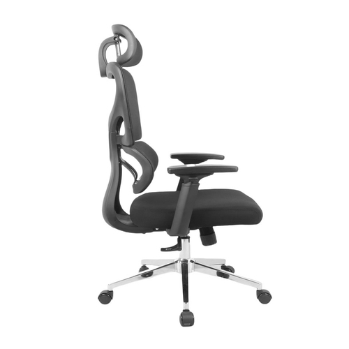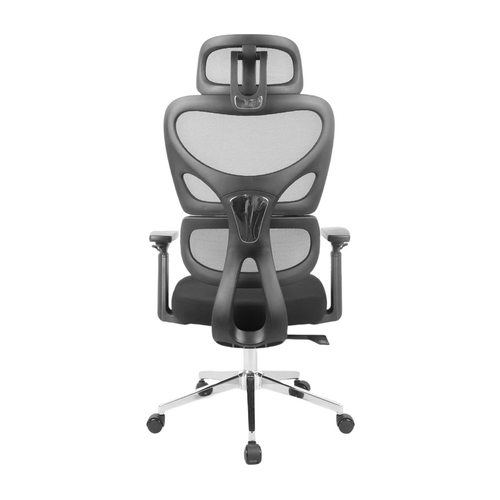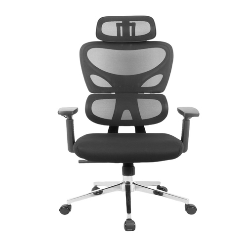 - Praticidade no uso com múltiplos ajustes e adaptação ao usuário: Conta com apoio de cabeça e braços ajustáveis em 3D, permitindo personalização conforme a necessidade do usuário. O mecanismo borboleta com função de bloqueio possibilita ajuste de inclinação, enquanto o pistão classe 4 garante regulagem de altura com segurança e estabilidade.